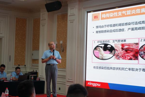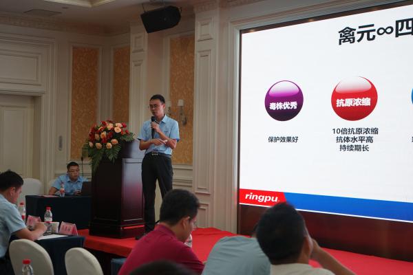 瑞普生物產品線副總裁尤永君做“家禽常見疫病的流行動態及防控策略”主題報告。尤總對當前危害家禽業比較重大的疾病如傳染性支氣管炎、傳染性鼻炎、傳染性貧血、支原體、禽流感等進行了詳細的介紹,并有針對性的提出了防控建議,對大家科學養殖提供了參考。
